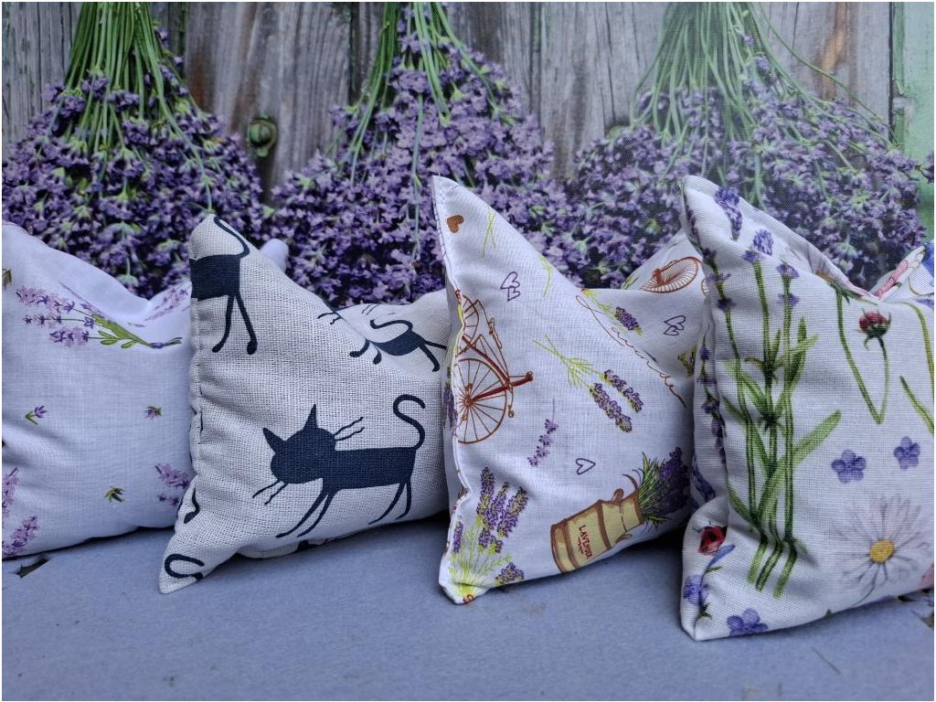 Každý polštářek je ručně plněn směsí špaldových nebo pohankových slupek a květy levandule v Bio kvalitě.