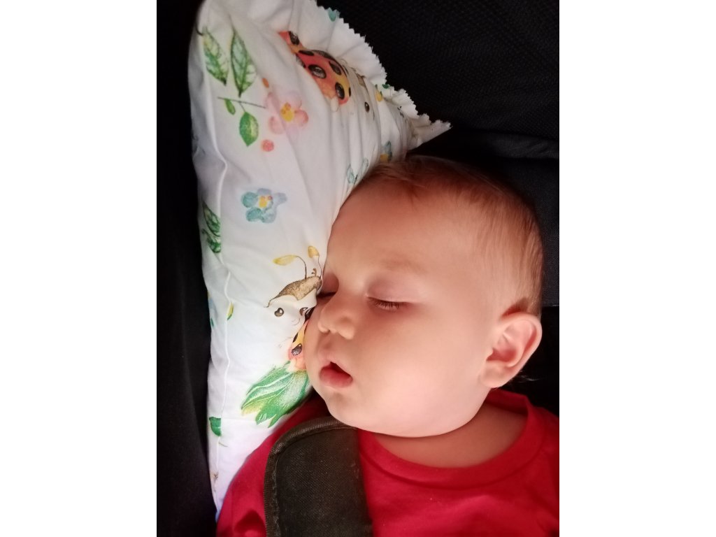 Tvar polštářku je ideální do kočárku, postýlky nebo na cestování.